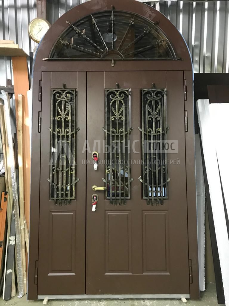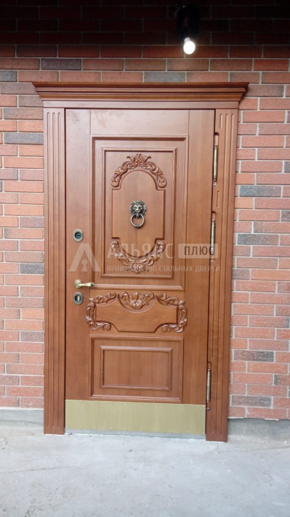Это металлические входные двери, у которых стальное полотно с утеплителем обшито мягкой обивкой из искусственной кожи — винилискожи, дермантина или экокожи. Обивка идёт по одной или двум сторонам двери, часто с подложкой из поролона, за счёт чего конструкция выглядит объёмной, лучше держит тепло и снижает уровень шума.