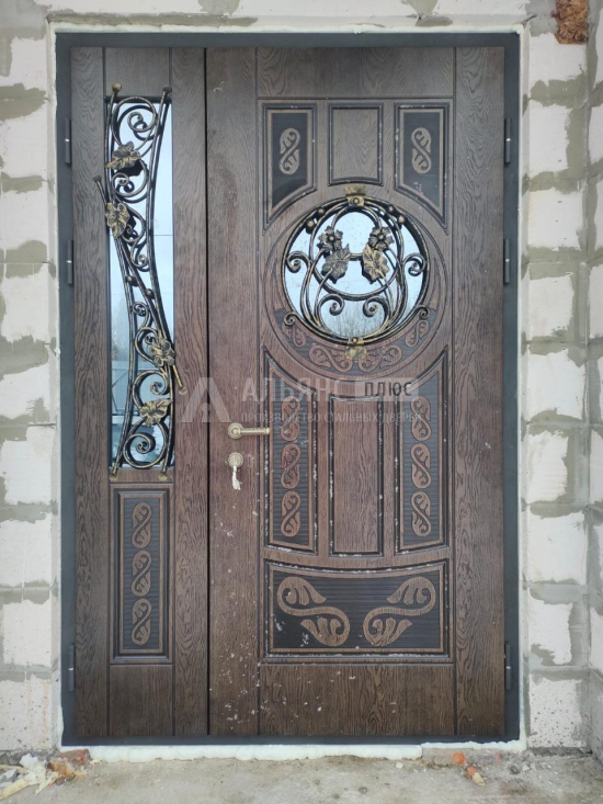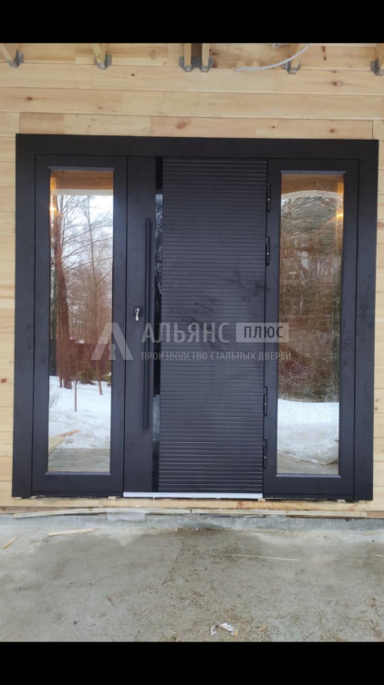 Входная дверь для коттеджа с МДФ №33 внешняя - фото Входная дверь для коттеджа с МДФ №33 внутренняя - фото