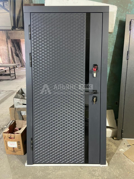 Конструкция двери включает прочный каркас из профильной трубы 50х25 мм, усиленный ребрами жесткости 40х25 мм, а также лист металла толщиной 2 мм, что делает дверь максимально устойчивой к внешним повреждениям. Два контура уплотнения с резиновым уплотнителем обеспечивают хорошую герметичность, защищая от проникновения холода и влаги. Несмотря на отсутствие встроенной шумоизоляции, дверь можно дополнить плитой минваты или пенопластом для улучшения теплоизоляции.